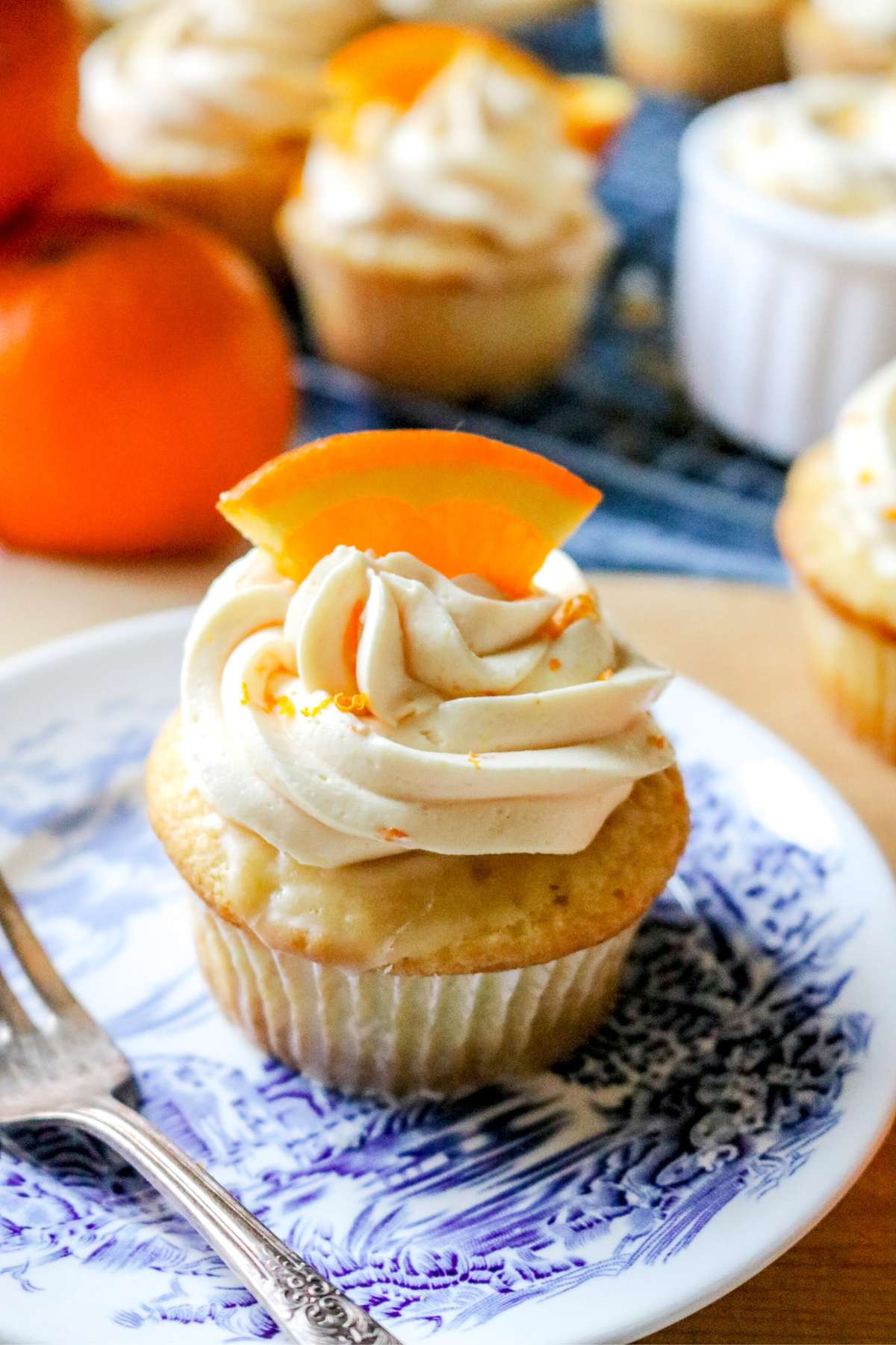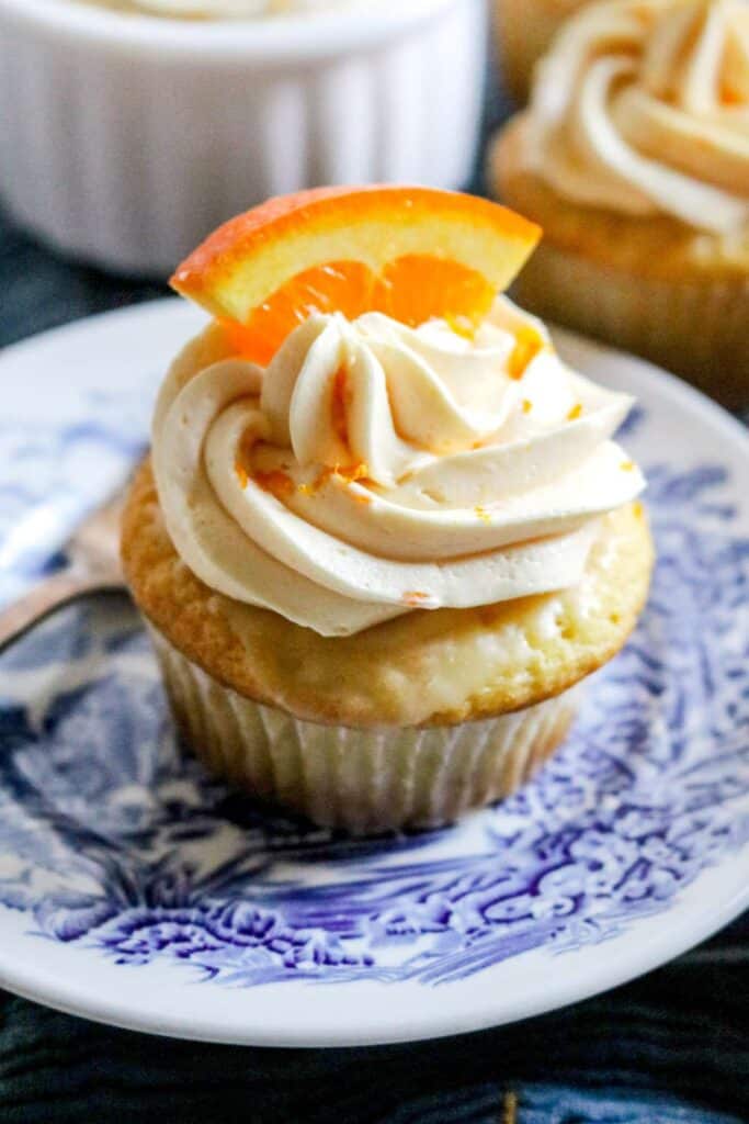 To make your cupcakes a little extra, add a garnish, like a segment of fresh or dried orange, candy oranges, sprinkles, sanding sugar, extra zest, etc.