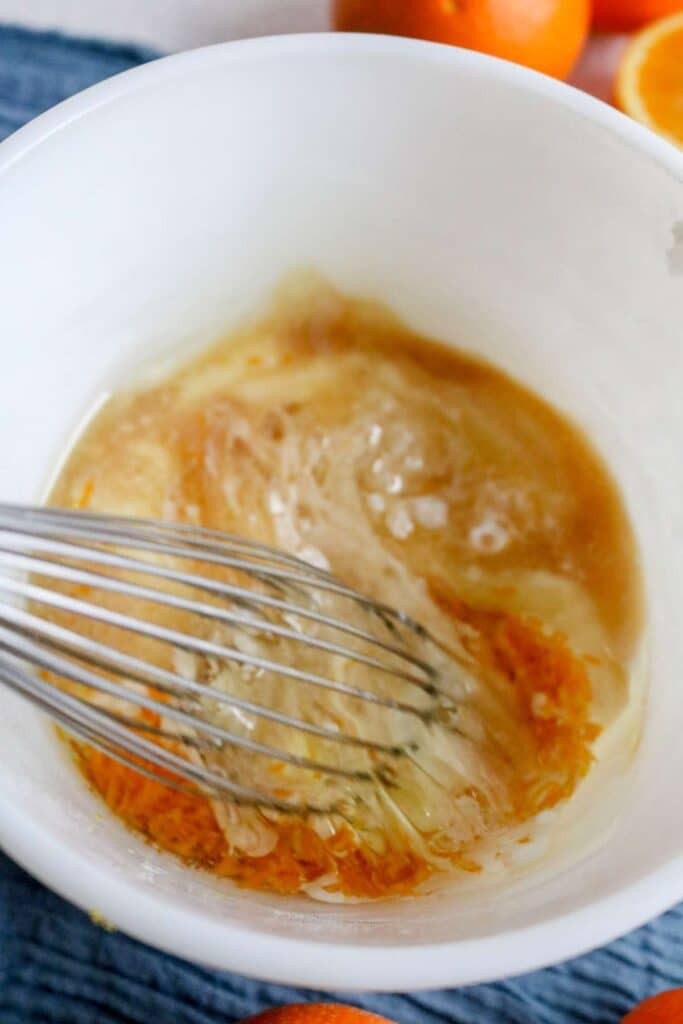 - While the cake bakes, whisk the Orange Glaze Drizzle Ingredients together until smooth.