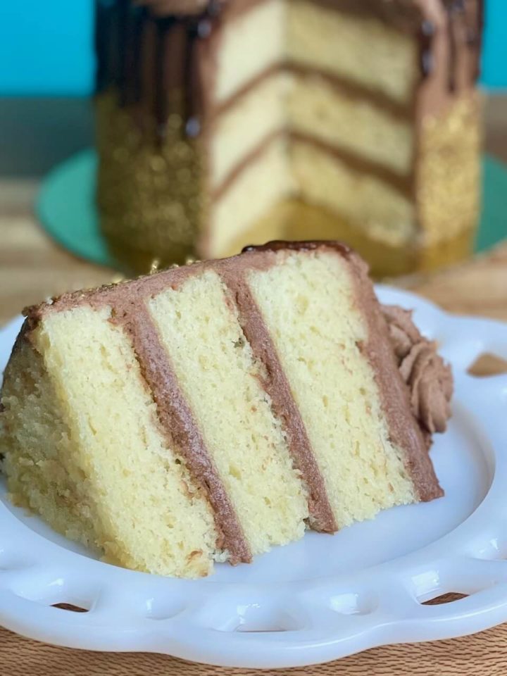 I feel like this cake would be a beautiful cake around the holidays! Top it with some holly berries and greenery for a Christmas Cake, or add some fresh berries and heart macarons around Valentine's Day. I hope you enjoy this bakery recipe! Please let me know what you think in the comment section below, or tag me on social media @amycakesbakes with your creation!